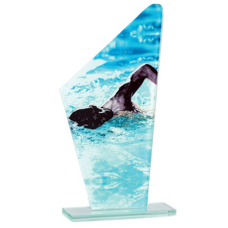 Die Glastrophäe kann optional mit Gravur geliefert werden. Alles im Preis inklusive!