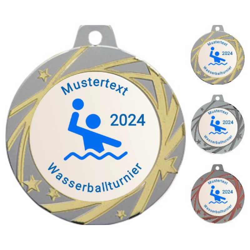 Gestalten Sie Ihre individuelle Medaille in den Farben Gold, Silber und Bronze. Die Medaillen werden fertig montiert und alles ist im Preis inklusive!