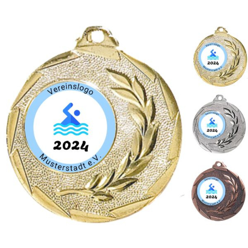 Gestalten Sie Ihre individuelle Medaille in den Farben Gold, Silber und Bronze. Die Medaillen werden fertig montiert und alles ist im Preis inklusive!