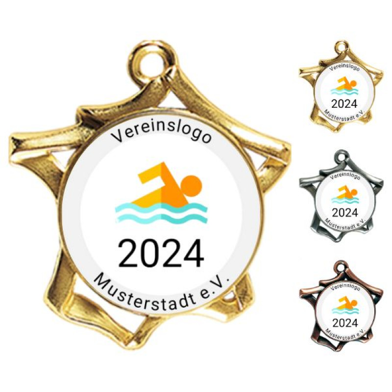 Gestalten Sie Ihre individuelle Medaille in den Farben Gold, Silber und Bronze. Die Medaillen werden fertig montiert und alles ist im Preis inklusive!