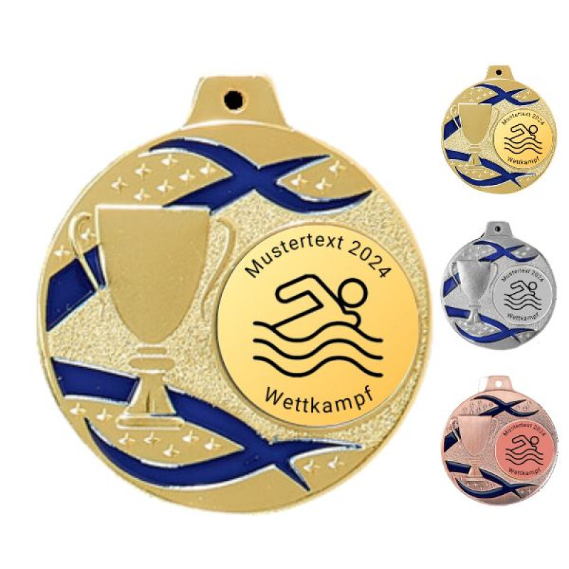 Gestalten Sie Ihre individuelle Medaille in den Farben Gold, Silber und Bronze. Die Medaillen werden fertig montiert und alles ist im Preis inklusive!