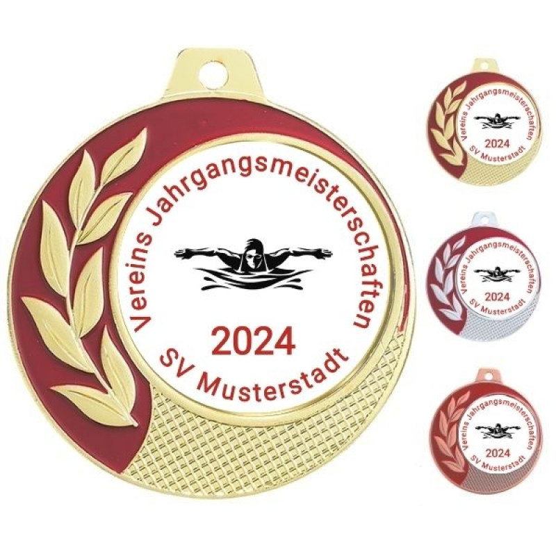 Gestalten Sie Ihre individuelle Medaille in den Farben Gold, Silber und Bronze. Die Medaillen werden fertig montiert und alles ist im Preis inklusive!