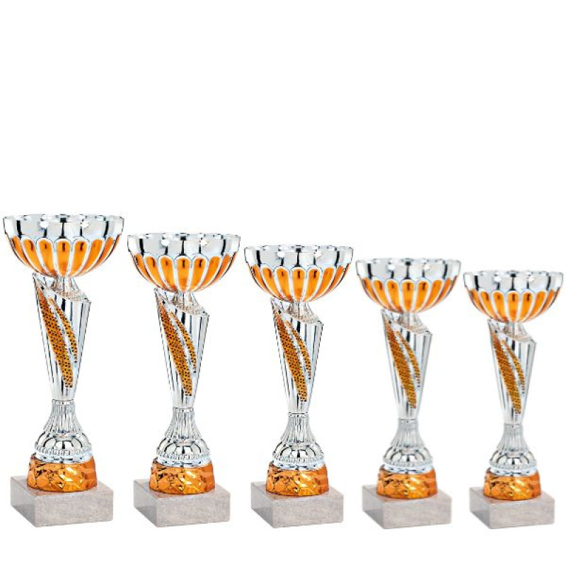 Die 5er Pokalserie bietet auch einzeln bestellbare Pokale, die mit Gravur und Emblem oder Logo geliefert werden können. Alles im Preis inklusive!