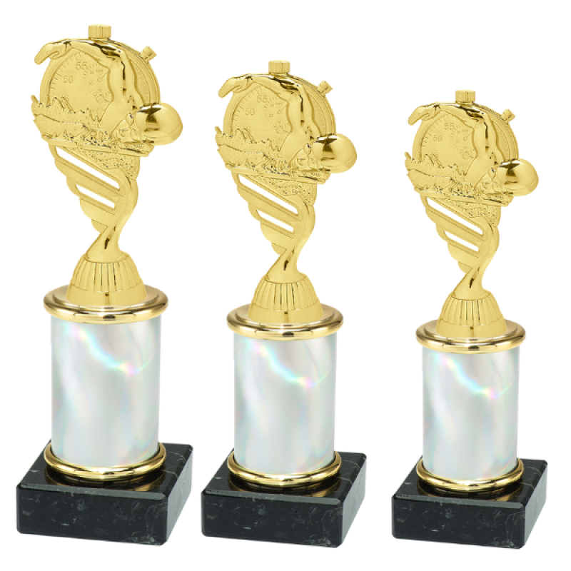 Die 3er Trophäen-Serie bietet auch einzeln bestellbare Trophäen, die optional mit Gravur geliefert werden können. Alles im Preis inklusive!